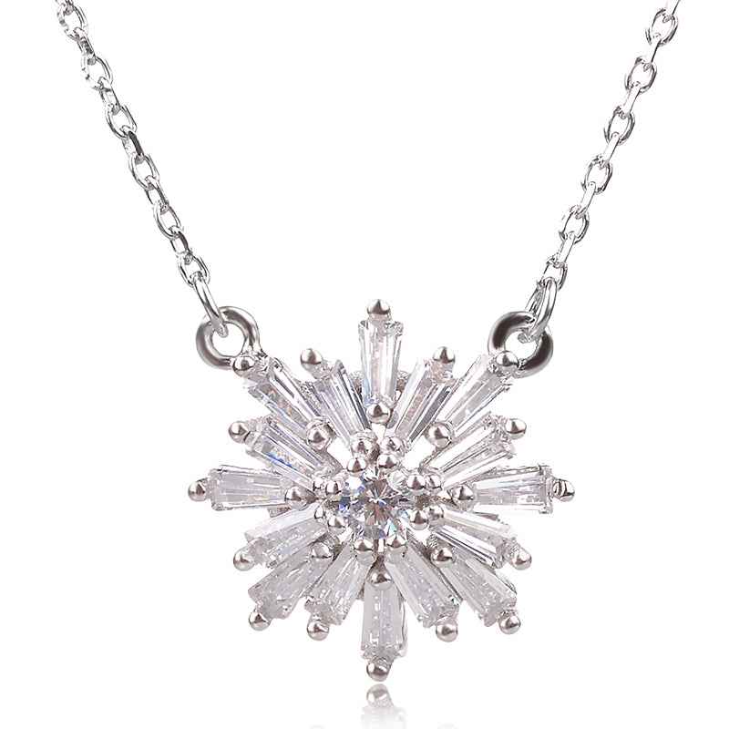 Сребърно колие снежинка с малки, инкрустирани в сребърни каси багетни цирконии. Тематичните бижута винаги създават настроение. Подарете си малко бляскаво изкушение за студените зимни дни :)