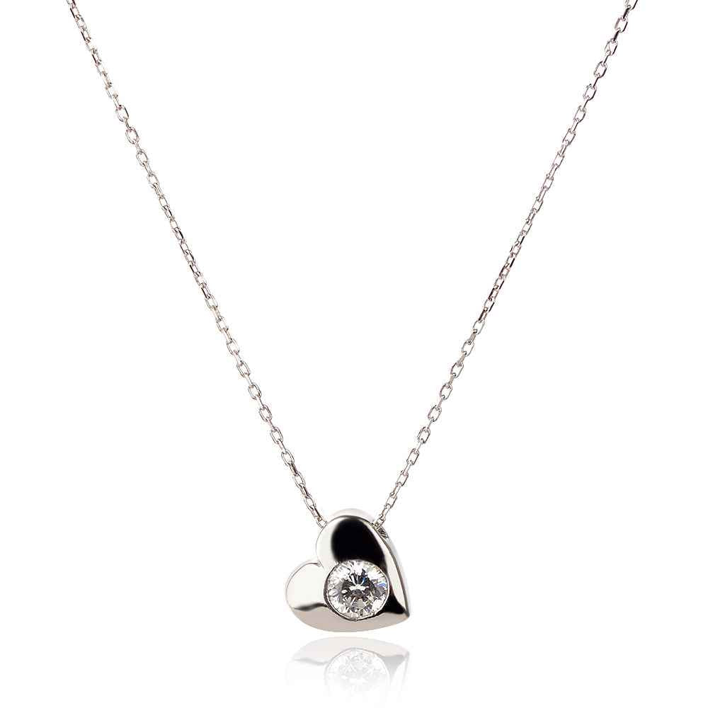 Сребърно колие сърчице с инкрустиран цирконий.