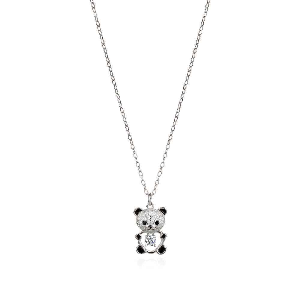 Сребърно колие мече с фино синджирче. Медальончето е обсипано с цирконии за разкош, а родиево покритие предпазва среброто от оксидация.