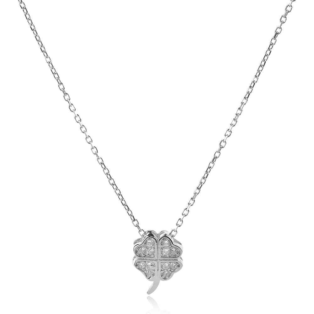 Сребърно колие с малка четирилистна детелинка, обсипана с циронии. Едно мъничко бижу-талисман за повече късмет и сбъднати желания :)