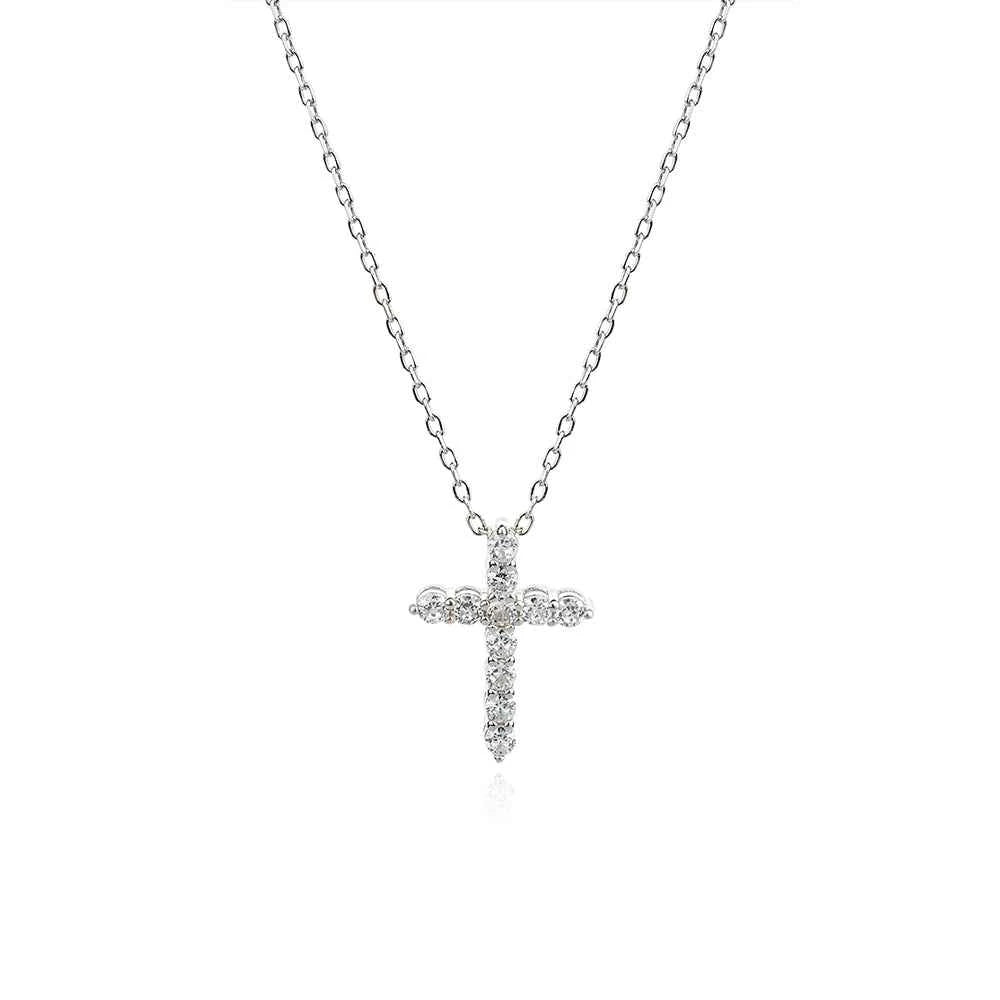 Сребърно колие с класическо кръстче с цирконии на късо гъвкаво синджирче. Деликатно бижу, символ на вяра, духовност и божествена защита. Бижуто е с прецизно родиево покритие, което предпазва среброто от оксидация и запазва блясъка на бижуто.