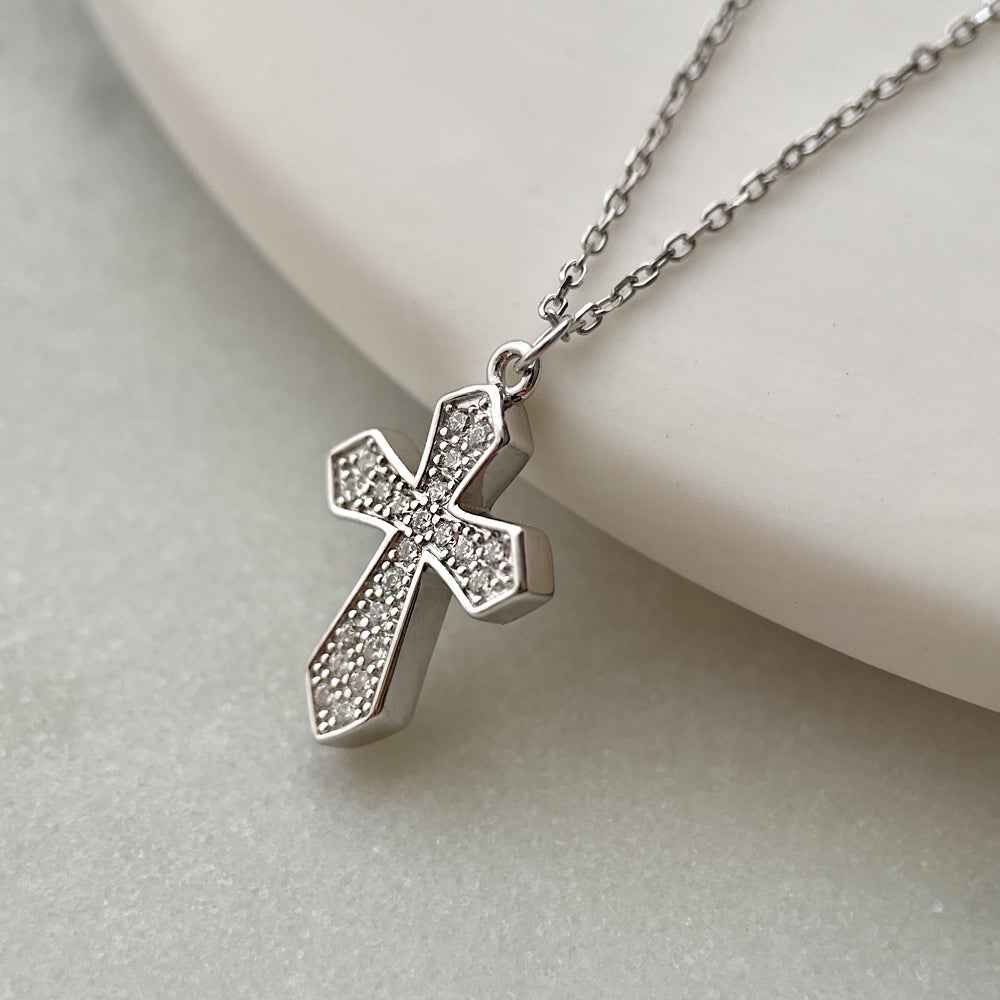 Деликатно бижу, символ на вяра, духовност и божествена защита. Бижуто е с прецизно родиево покритие, което предпазва среброто от оксидация и запазва блясъка на бижуто.