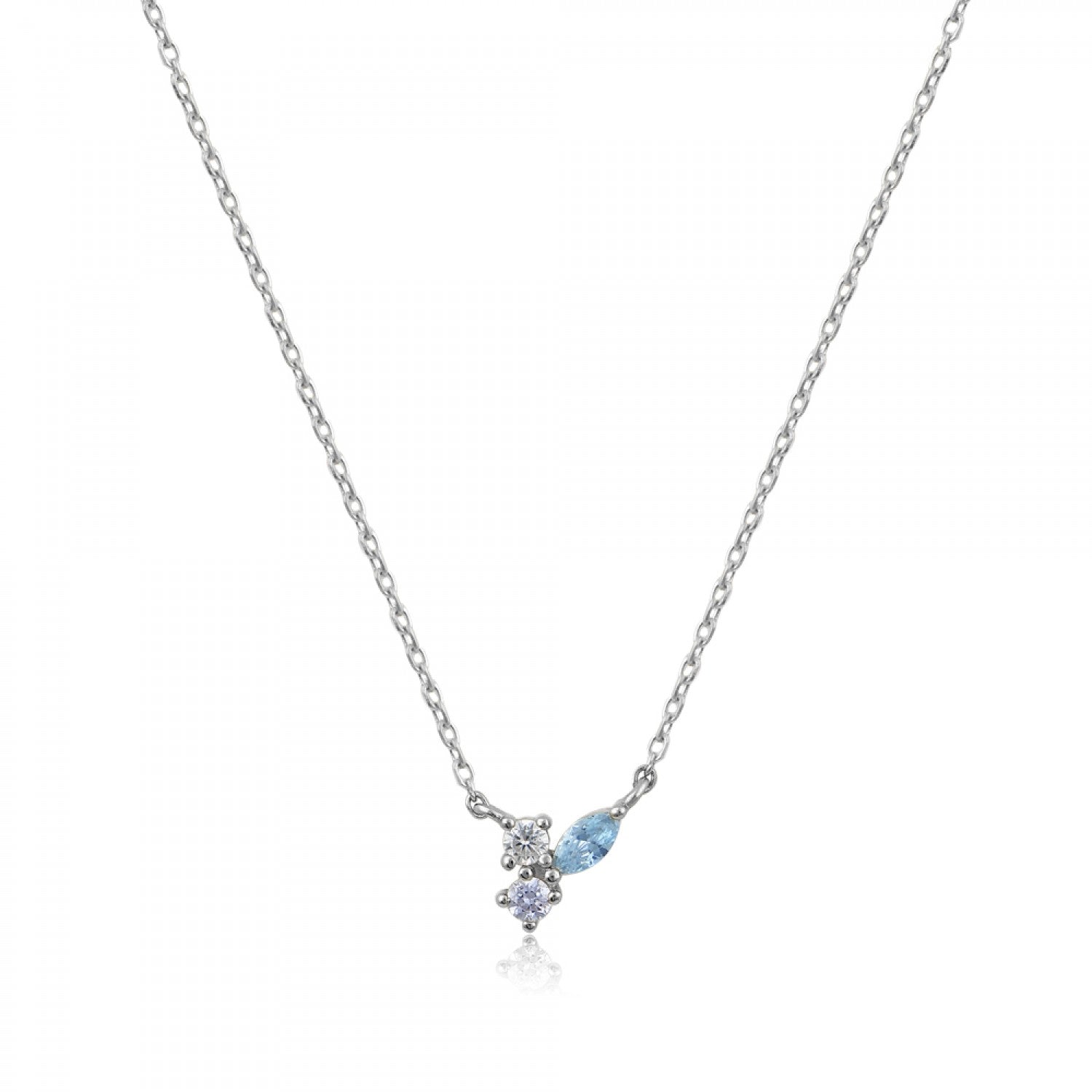 Сребърно колие с цирконии и прецизно родиево покритие. Добави цвят и деликатен блясък към визията! Малко нежно бижу с изящна изработка.