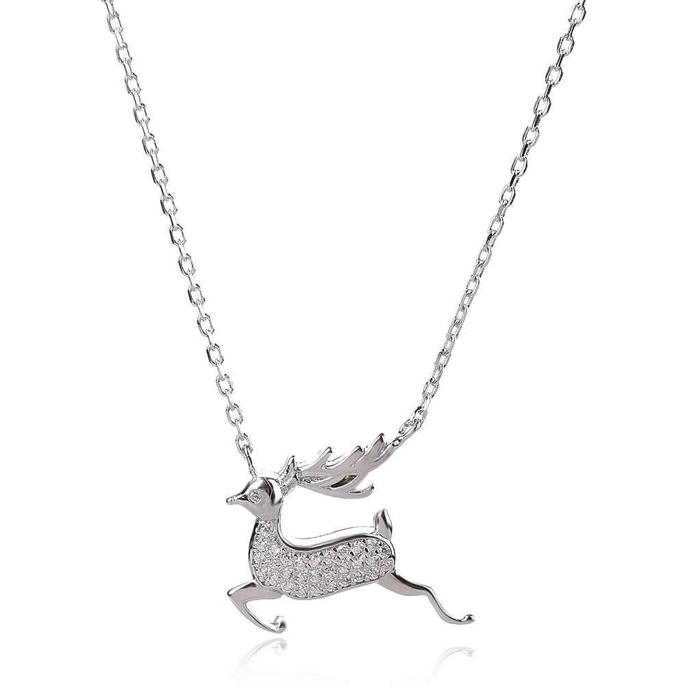 Сребърно колие с еленче обсипано с малки цирконии. Нежно и изящно бижу, което би се превърнало в страхотен тематичен подарък за зимните празници. Колието е родирано, което гарантира дълготрайния му блясък. Дължината може да се коригира с 3см чрез нежен удължител от халкички в края на синджирчето.