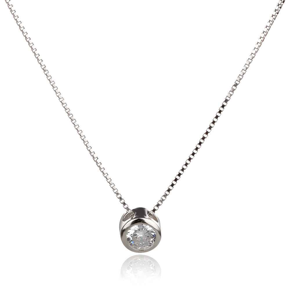 Сребърно колие с миниатюрно медальонче- циркон в обков на фино гъвкаво синджирче. Колието е с родиево покритие, което предпазва среброто от оксидация и гарантира блясъка на бижуто. Удължител от халкички в края на синджира позволява лесна корекция на дължината с 5см.