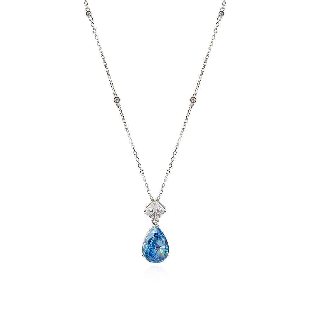 Сребърно колие с комбинация от син и бял цирконий с брилянтен фасет и сияен блясък. Колието е с удължител от халкички за лесна корекция на дължината с няколко сантиметра.