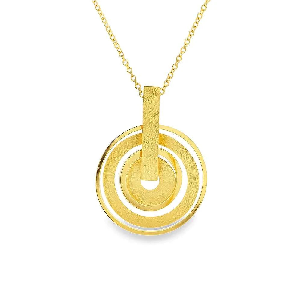 Геометрично италианско сребърно колие с позлата, подвижни кръгове и контраст между мат и блясък. Модерен дизайн, който трепти с всяко движение.