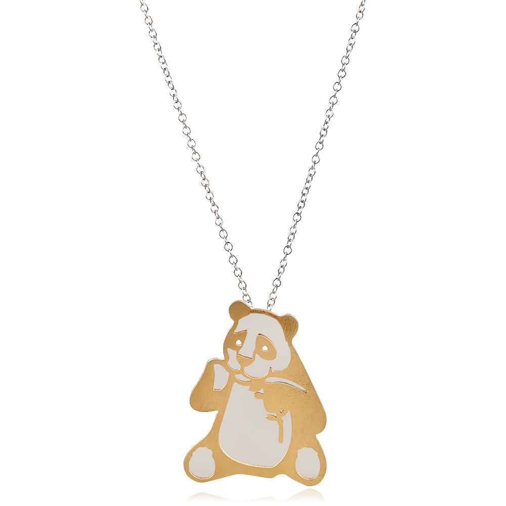 Дълго сребърно колие панда с жълта позлата и фин лазерен матиращ финиш. Кой не би искал да носи със себе си този сладък приятел с големи тъжни очи :)