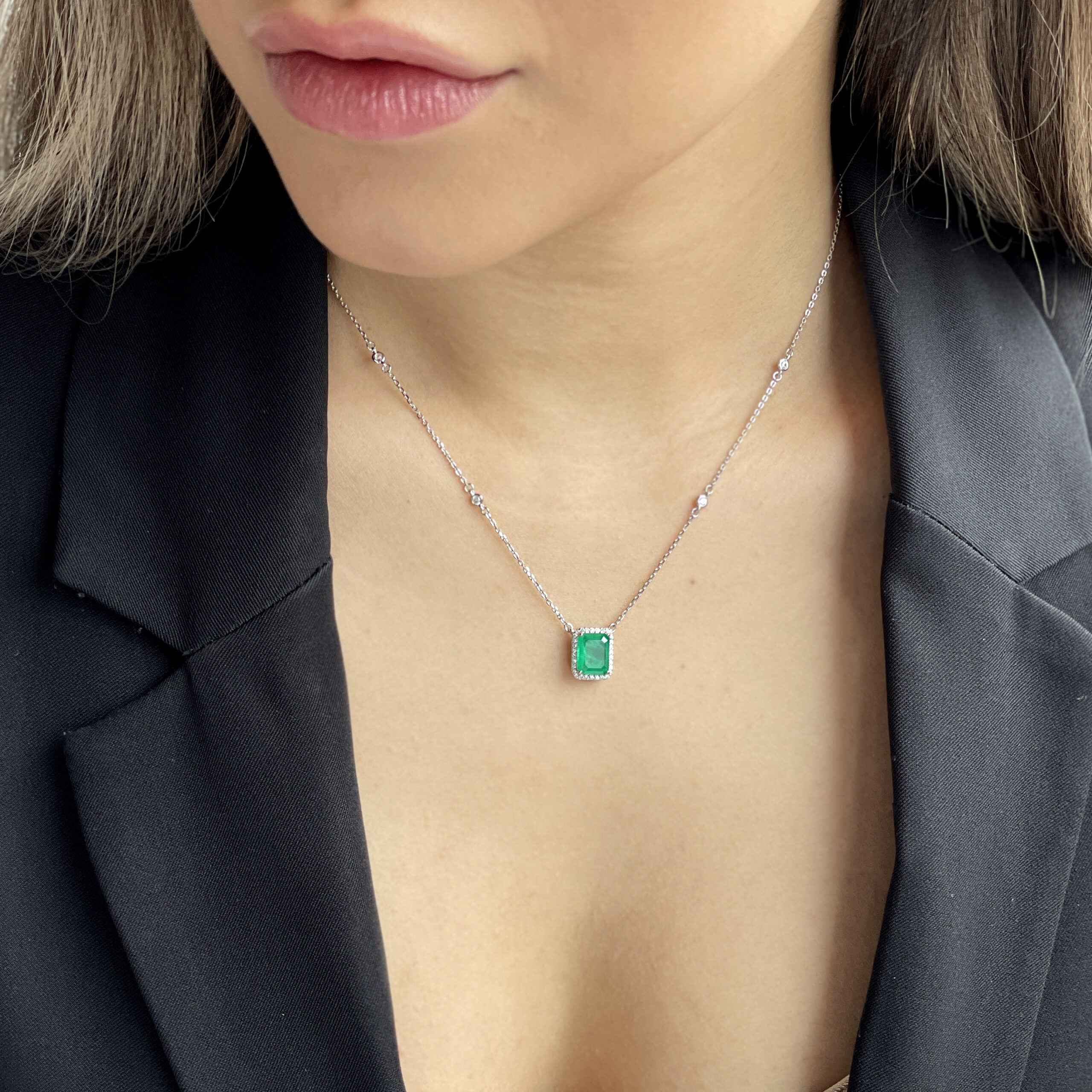 Сребърно колие с турмалин парайба в правоъгълна формата в рамка от цирконий. Колието е с фино гъвкаво синджирче с удължител от халкички в края, което позволява лесна корекция на дължината с 3см. За разкош, малки цирконии са инкрустирани в синджира. Бижуто е с родиево покритие, което предпазва среброто от оксидация.
