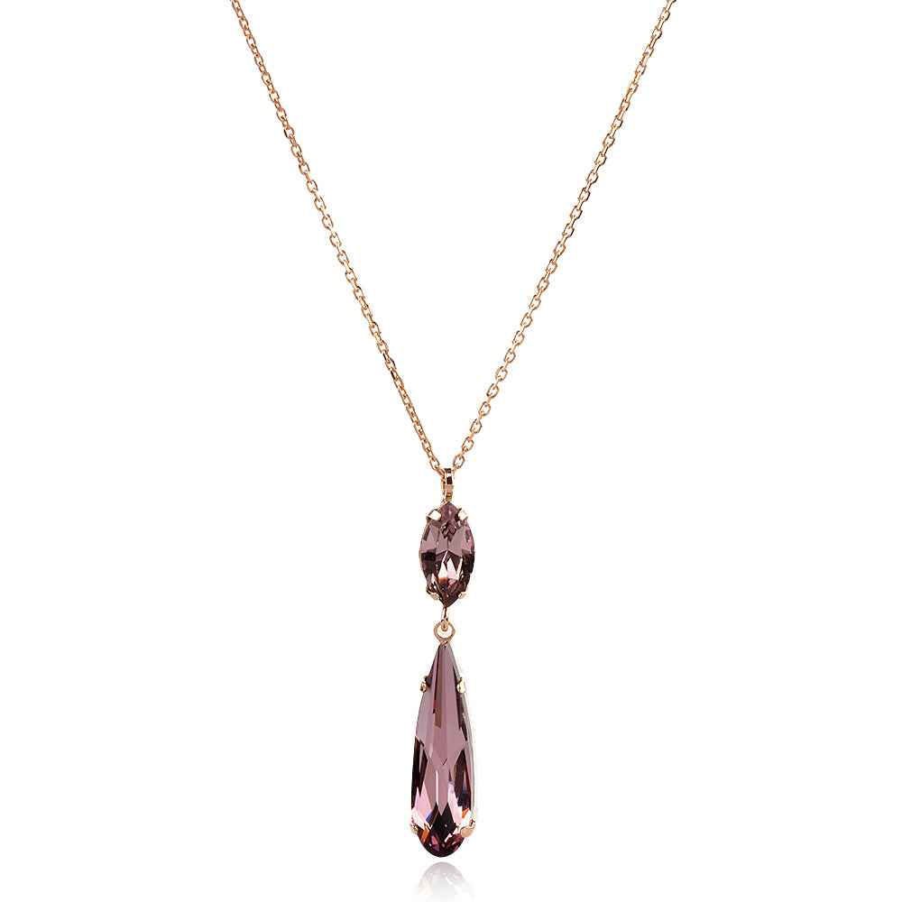 Сребърно колие с оригинални кристали Swarovski®. Бижуто е с прецизна фабрична розова позлата. Всеки кристал е инкрустиран в сребърна каса.