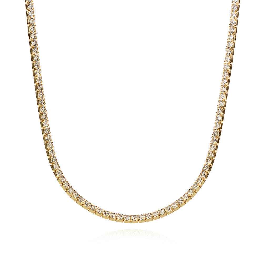 Една вечна класика- сребърно тенис колие чокър с позлата. Колието е с дължина 35см плюс удължител от халкички.