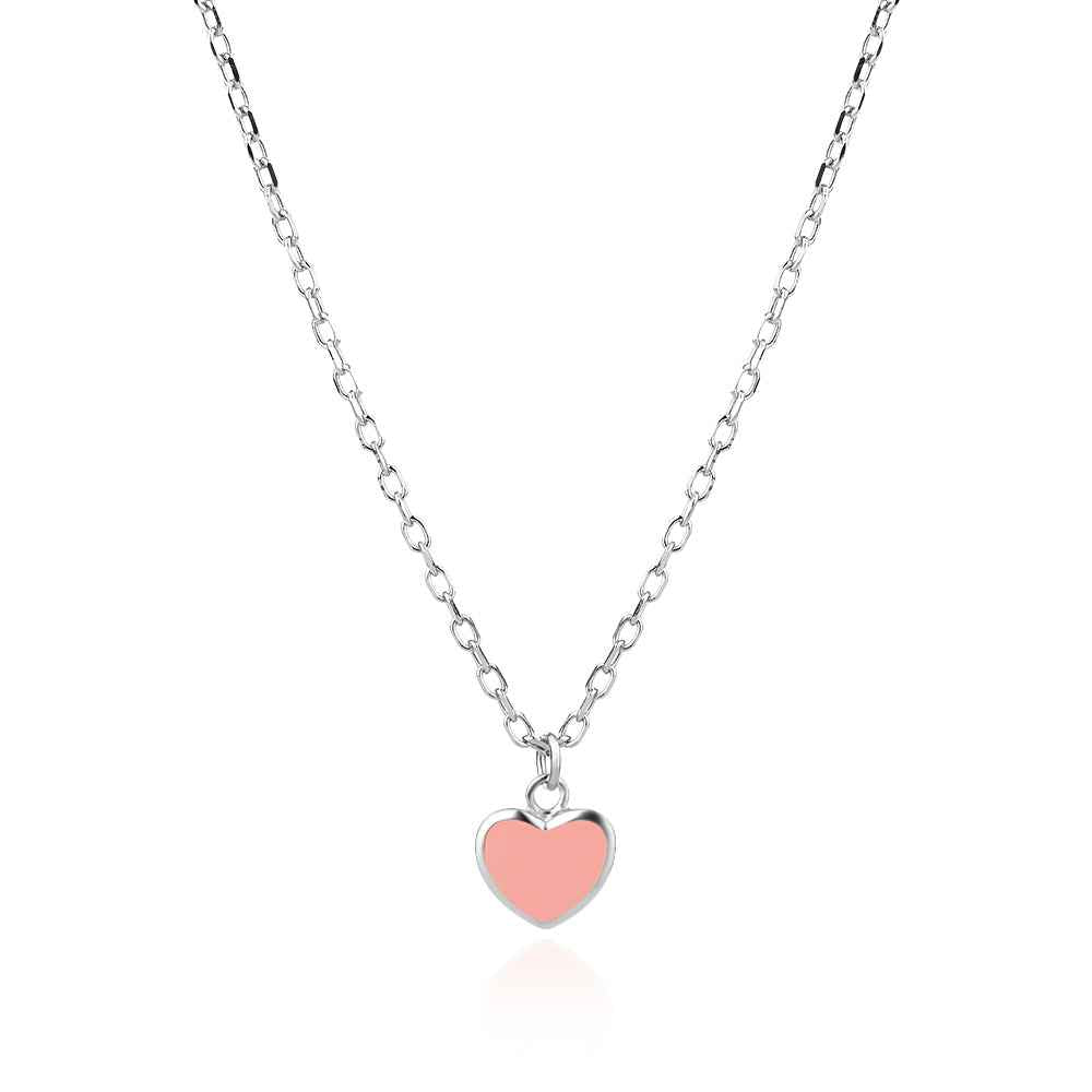 Нежно сребърно колие сърце, апликирано с розов емайл. Малко и изящно, това колие ще зарадва малки и пораснали ценителки на романтичните минималистични бижута. Синджирчето е с удължител от халкички и позволява корекция на дължината с няколко сантиметра. Родиево покритие предпазва среброто от оксидация и запазва блясъка на бижуто.