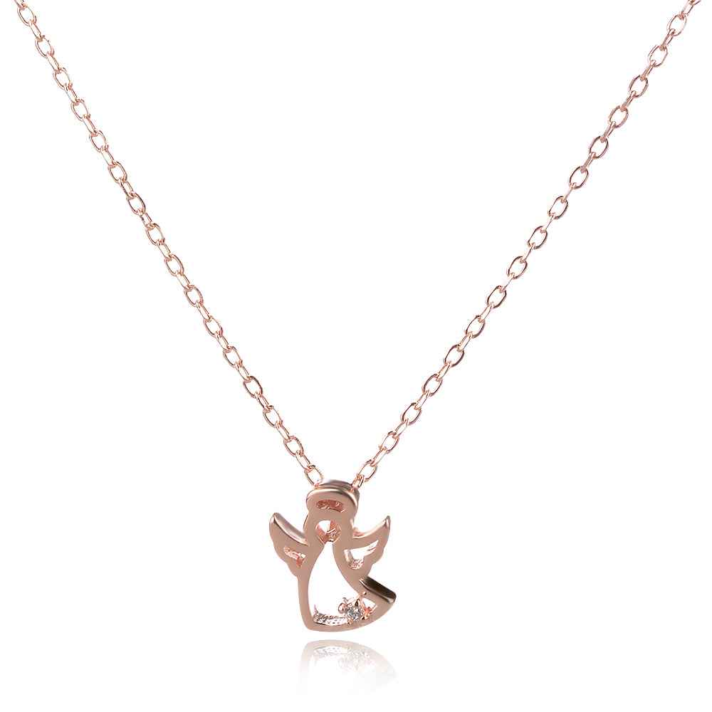 Нежно сребърно колие с розова ползата. Миниатюрното ангелче е комбинирано с фино гъвкаво синджирче с удължител от халкички в края, което позволява лесна корекция на дължината с 3см.