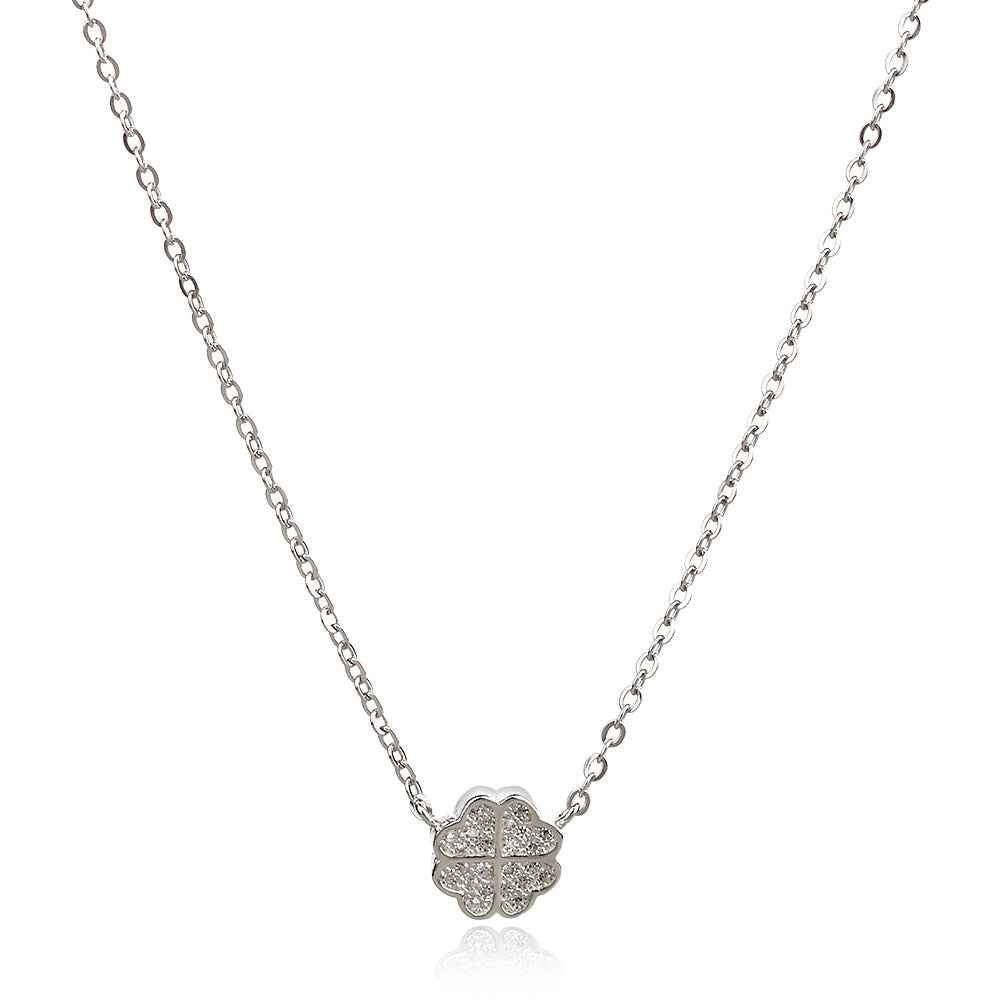 Сребърно колие с миниатюрна четирилистна детелинка, обсипана с циркони. Малък бляскав талисман за късмет, с който ще озарите деколтето. Бижуто е с родиево покритие, което предпазва среброто от потъмняване. Дължината на синджира е 40см, а удължител от халкички позволява лесна корекция с още 5см.