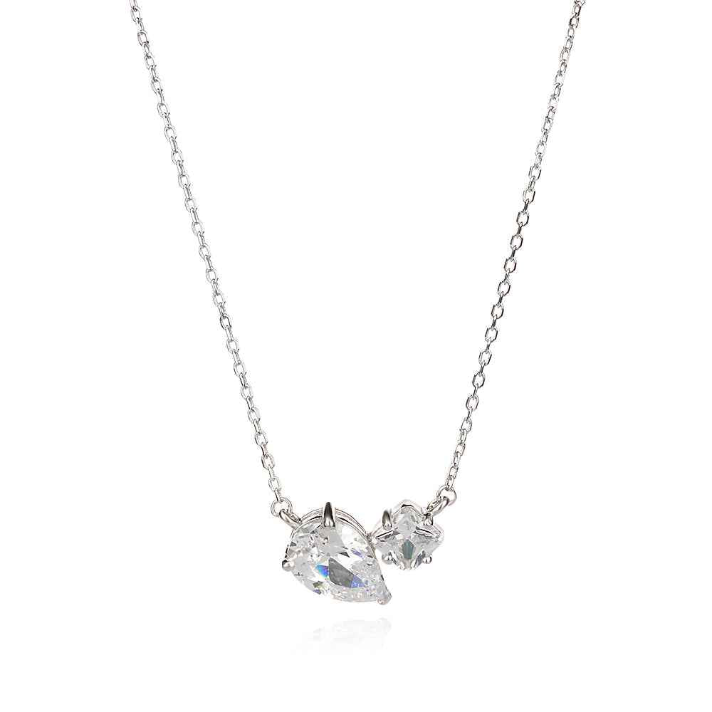 Shine bright! Фино сребърно колие с акцент от перфектно фасетирани цирконии капка и квадрат. Уловете светлината и озарете деколтето с това изискано украшение с перфектна изработка и блясък. Дължината на синджирчето може да се регулира с няколко см.