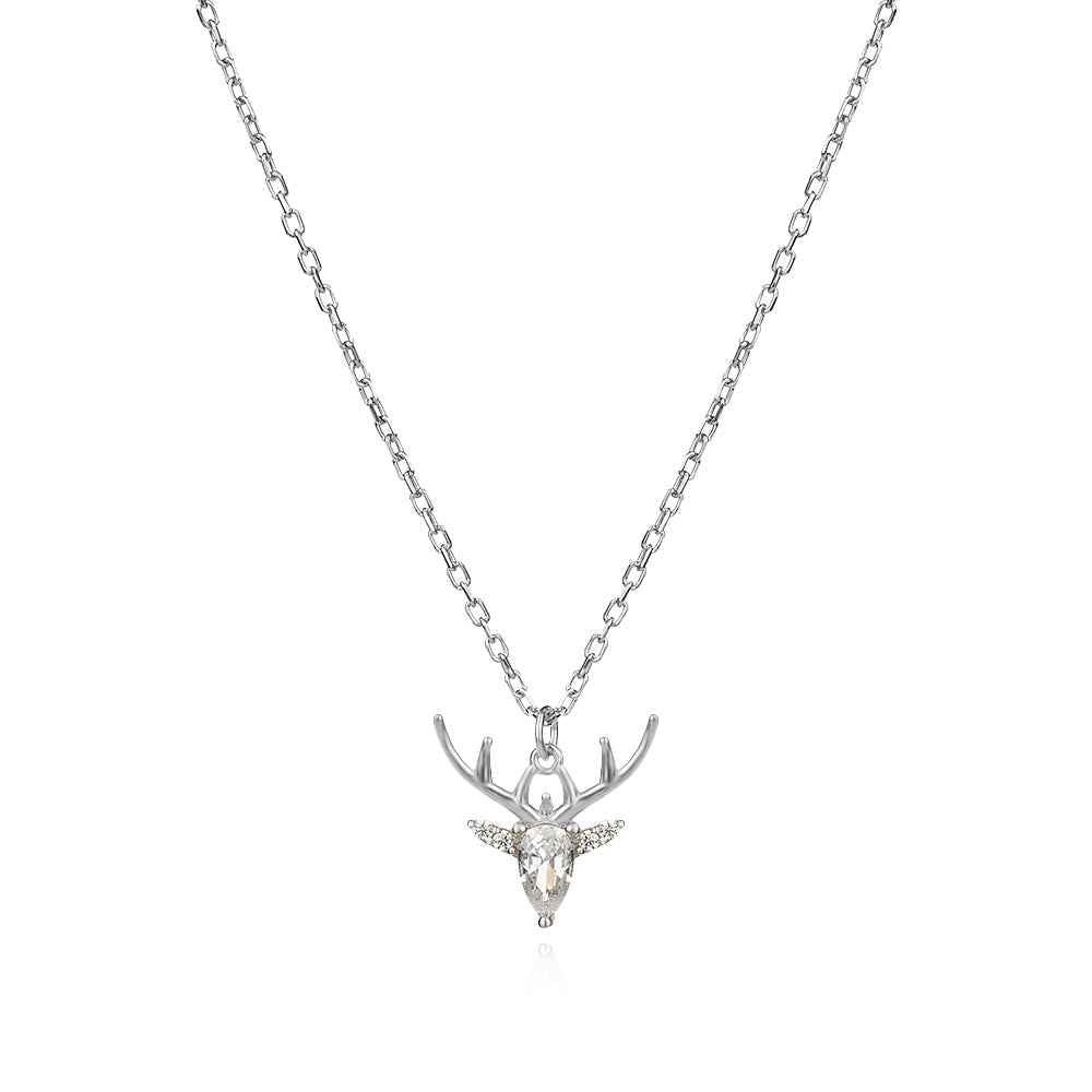 Приказно сребърно колие с форма на изящен стилизиран елен с деликатен блясък от цирконии. Перфектен избор за празничните зимни дни.
