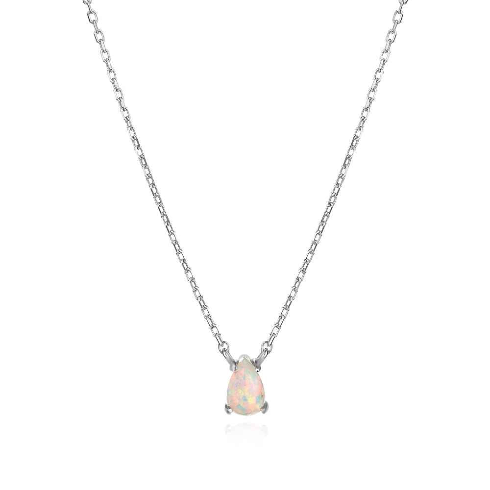 Нежно деликатно сребърно колие капчица с бял пресован опал в семпъл обков. Синджирчето е с дължина 40 см и удължител от халкички за лесна корекция с още няколко сантиметра. Бижуто е с родиево покритие, което предпазва среброто от оксидация.