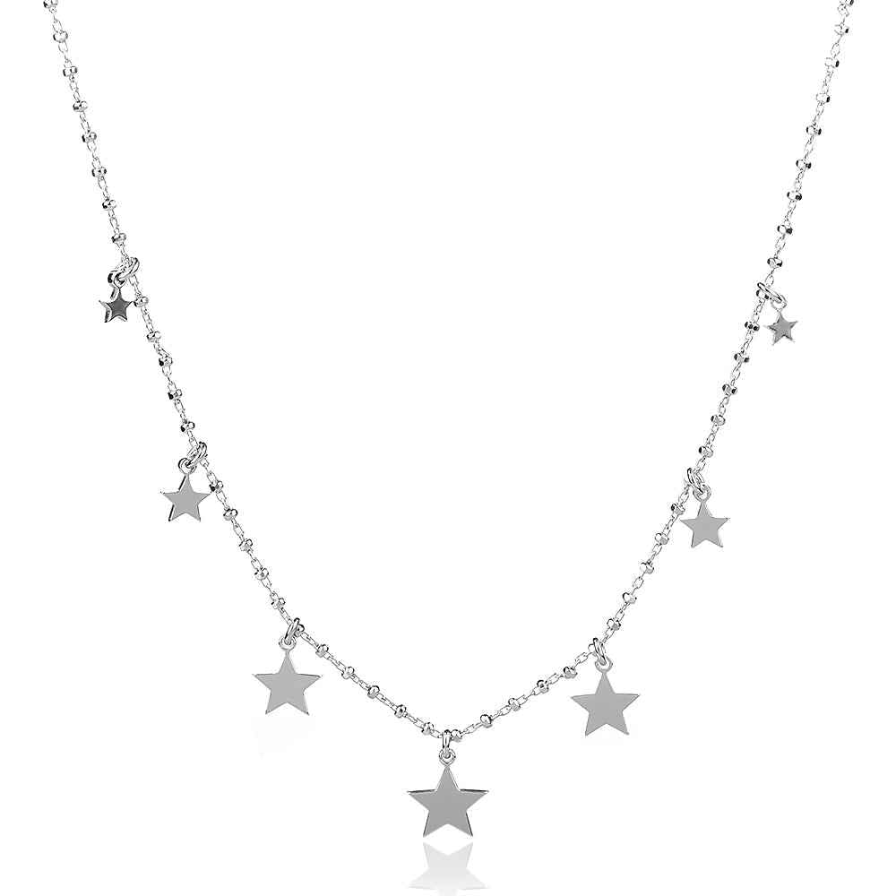 Сребърно колие "Звезди"- минималистично бижу от седем перфектно полирани сребърни звездички, симетрично разположени на родиран синджир със ситни фасетирани сребърни топчета. Тренди и шик, това бижу симпатично ще допълни всяка ежедневна или вечерна визия.