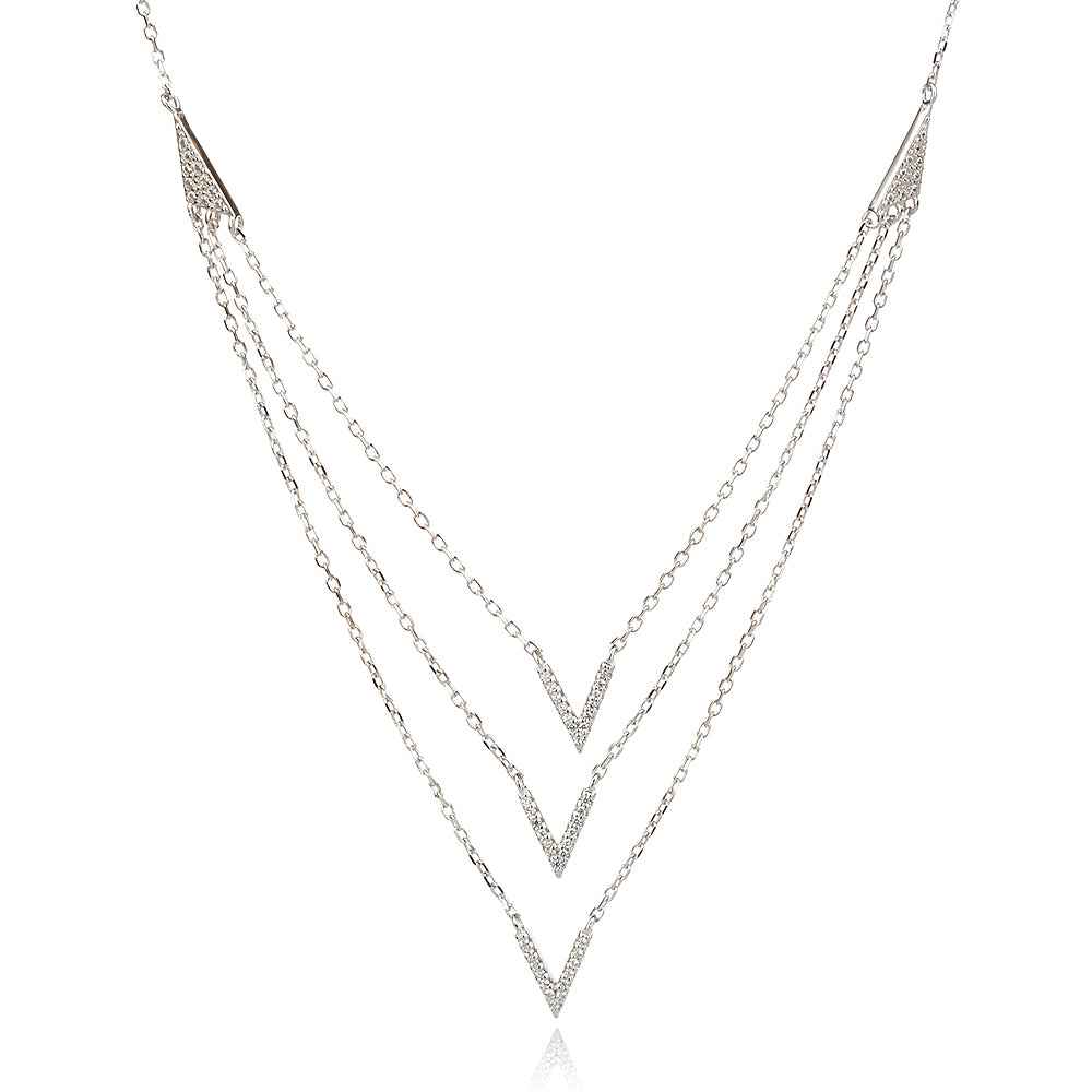 Ефектно сребърно колие на три нива. Перфектното допълнение към ризи и топове с остро деколте.