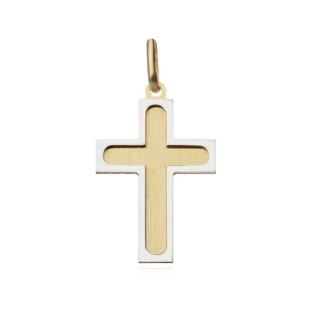 Класическо кръстче, изработено от 14К жълто и бяло злато. Бижуто е с фина изработка и изчистен елегантен дизайн, което го прави подходящ символичен подарък за кръщене, Коледа и др.