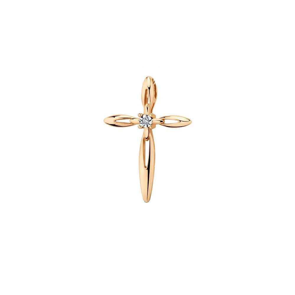 Кръстче от 14K розово злато с диамант.