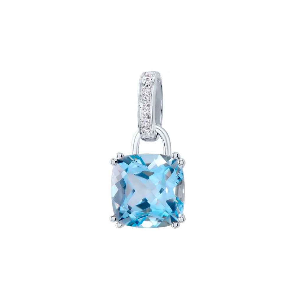 Mедальон от 14K бяло злато със син топаз и диаманти.