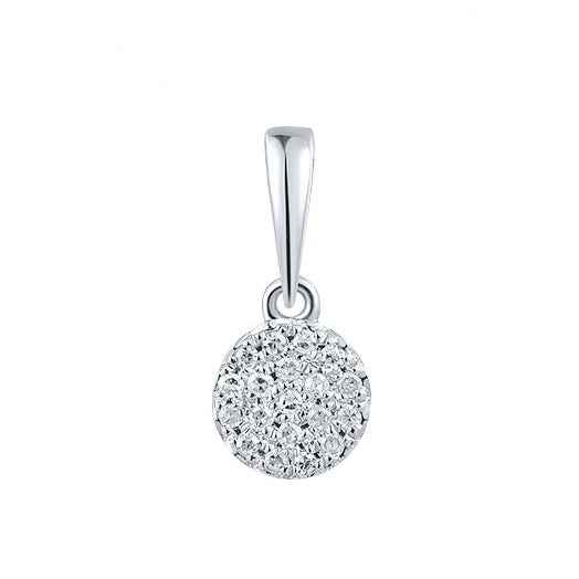 Малък изящен медальон от 14K бяло злато с диаманти.