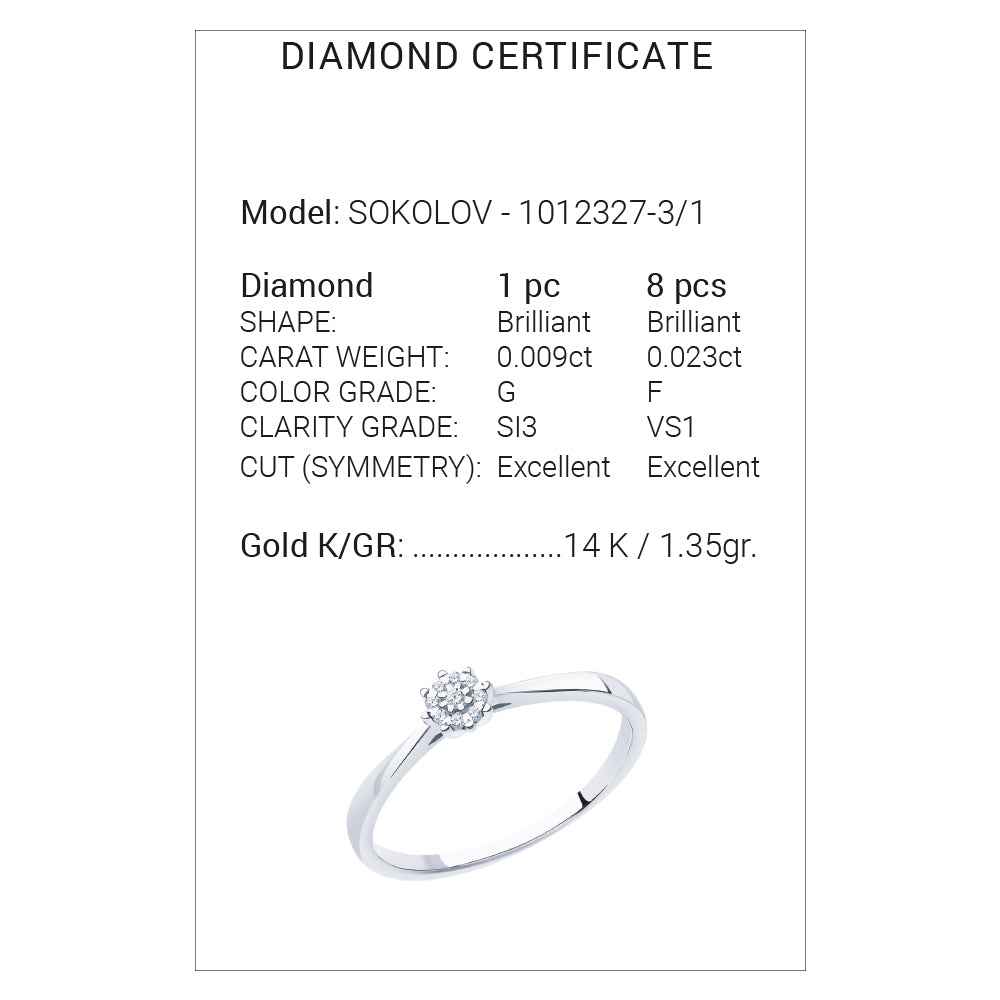 диаманти- 1бр.- 0,100ct, G/SI, 16 бр.-0.08ct, J/SI