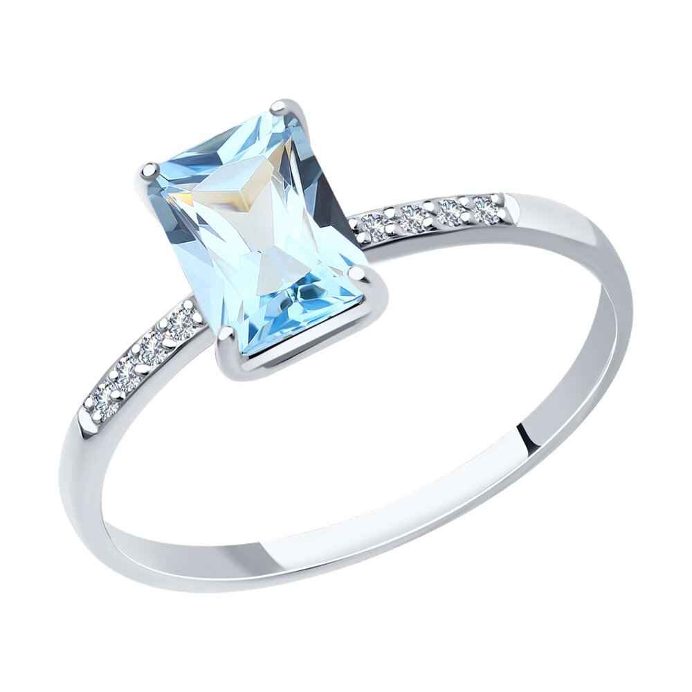Пръстен от 14K бяло злато с брилянти и син топаз.