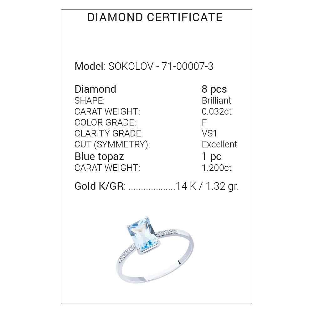 брилянти 8бр.-0.032ct, F/VVS1, син топаз 1бр.