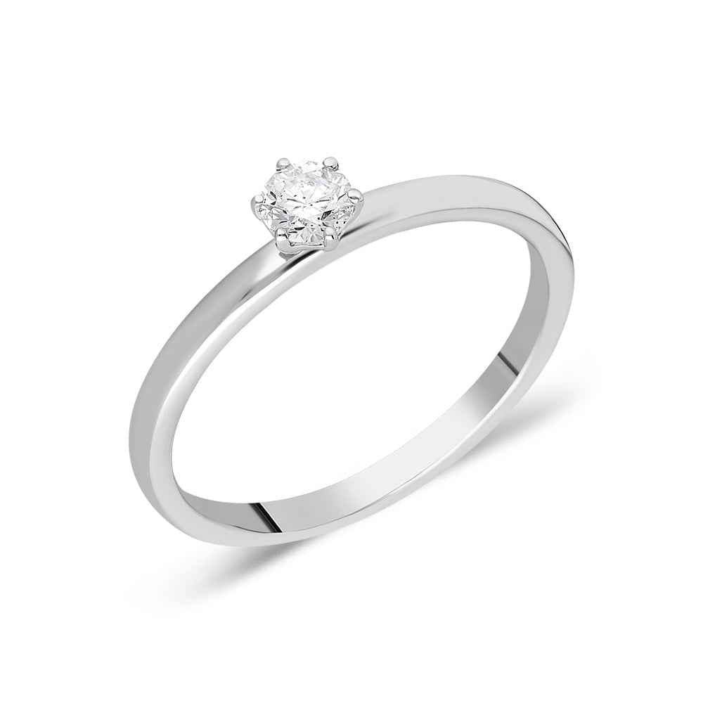 Класически годежен пръстен от 14K бяло злато с естествено добит диамант в красива 6-зъбна каса тип Тифани. Пръстенът е наличен в размер 54 и при необходимост може да бъде коригиран в рамките на 3-4 работни дни. Първата корекция на размера е безплатна.