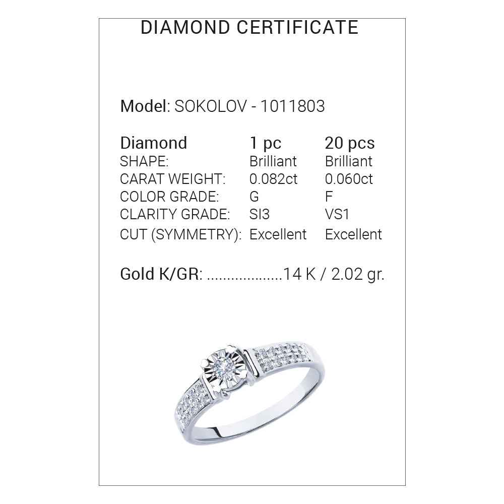 брилянти 1бр.- 0,082ct, G/SI3, 20бр.- 0.060ct, F/VS1