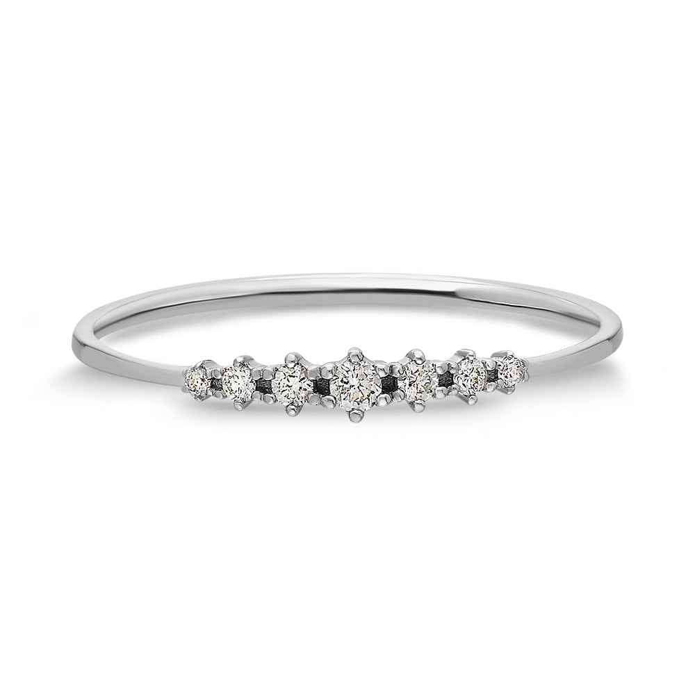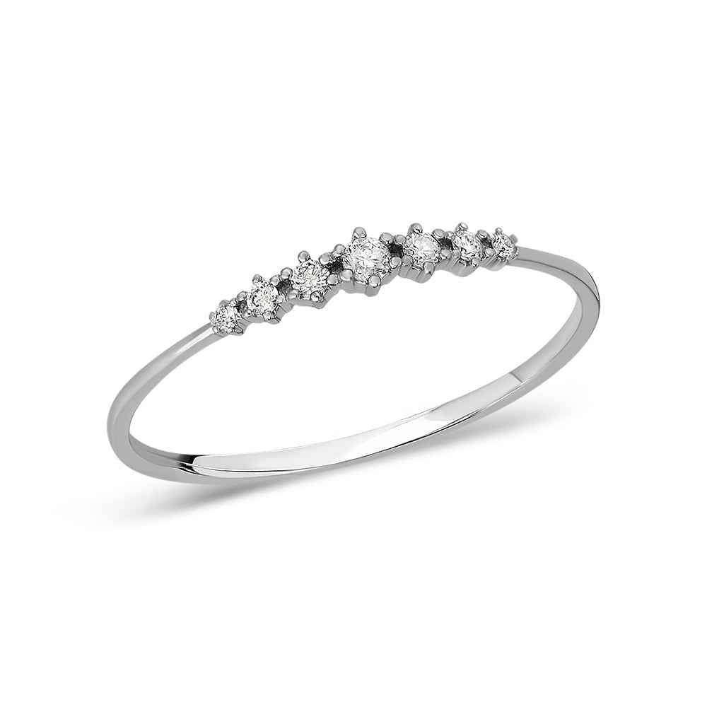 Годежен пръстен от 14K бяло злато с естествено добити диаманти. Пръстенът е наличен в размер 55 и при необходимост може да бъде коригиран в рамките на три работни дни. Първата корекция на размера е безплатна.