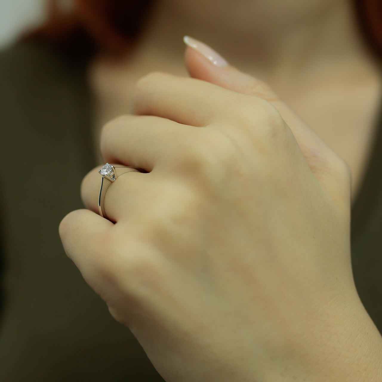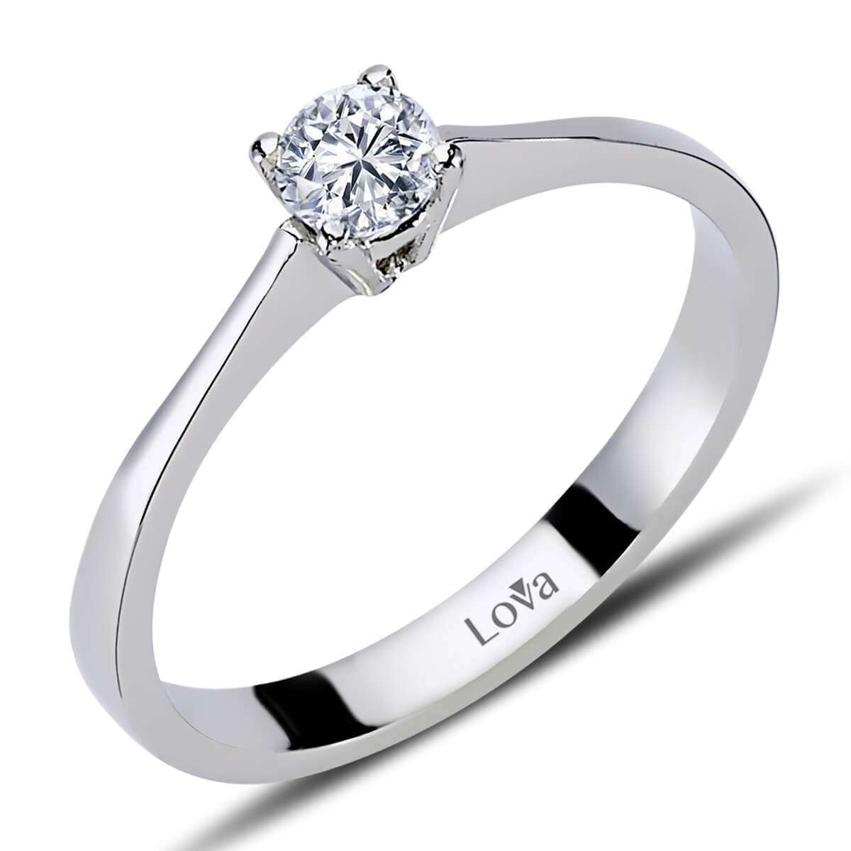 Годежен пръстен от 14K бяло злато с диамант. Пръстенът е наличен в размер 54 и при необходимост може да бъде коригиран в рамките на 1-2 работни дни. Първата корекция на размера е безплатна.
