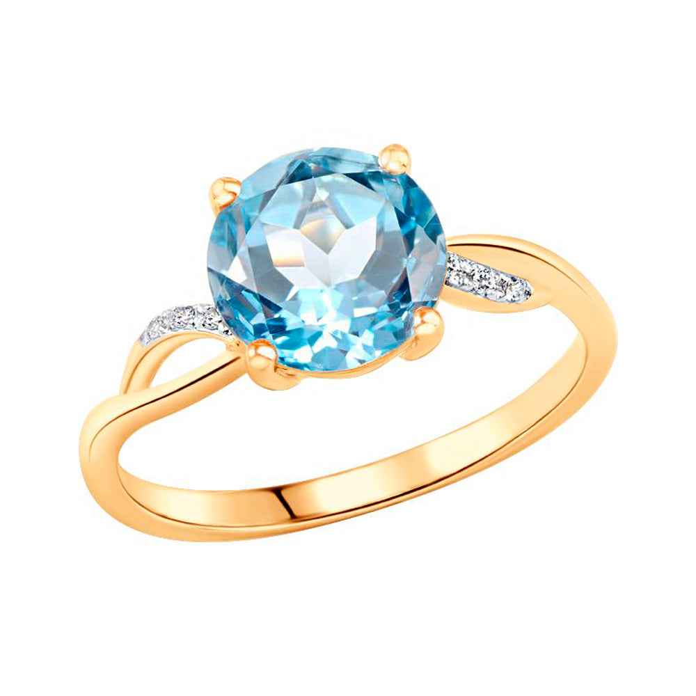 Златен пръстен - Dia Blue topaz
