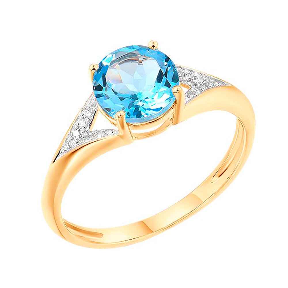 диаманти 0,031ct, E/VS1, син топаз с диаметър 7мм