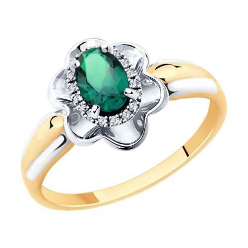 Пръстен изработен от 14K бяло и жълто злато с диаманти и изумруд.