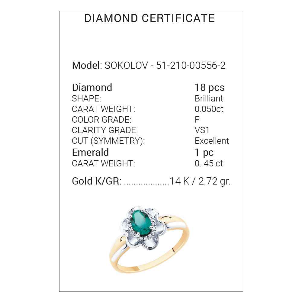 брилянти 18бр.- 0.050ct, F/VS1, изумруд 6/4 мм