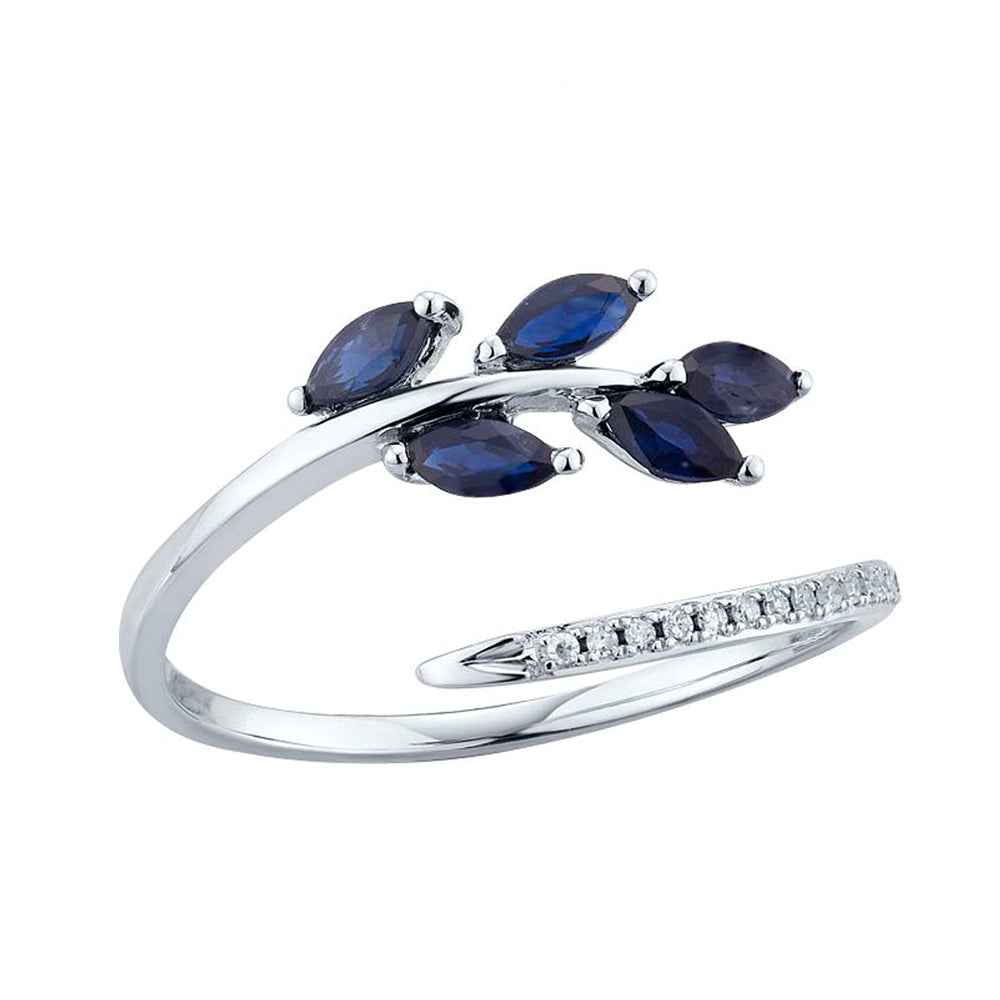 Изящен пръстен от 14K бяло злато с диаманти и сапфири.
