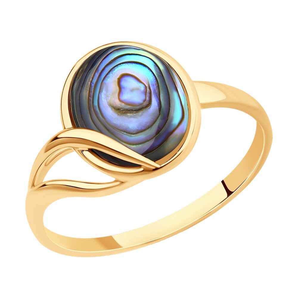 Ярък изящен пръстен от 14K розово злато със зелен перфектно калиброван кралски седеф в елегантен обков.