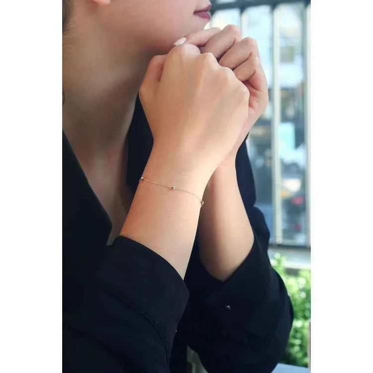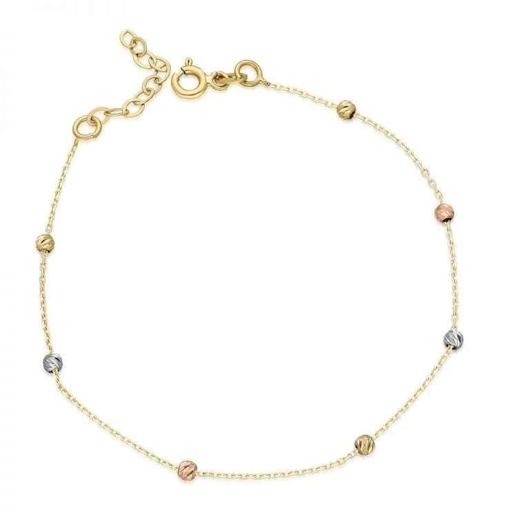 Класическа и универсална гривна от 14K злато с малки сферични елементи в три тона – жълто, розово и бяло. Нейната изчистена визия и модерен дизайн я правят идеален избор при stacking (комбиниране с други гривни или часовник).