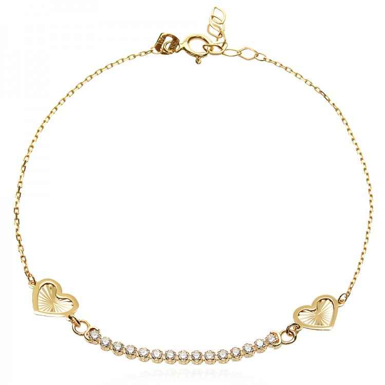 Нежна 14К златна гривна със сърца и деликатен блясък от цирконии. Гривната е с перфектна полировка и фина италианска изработка.