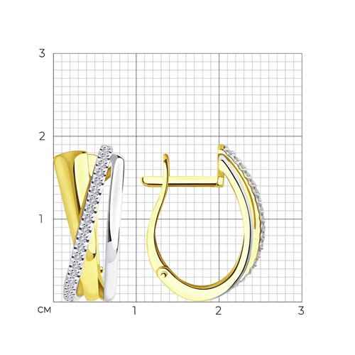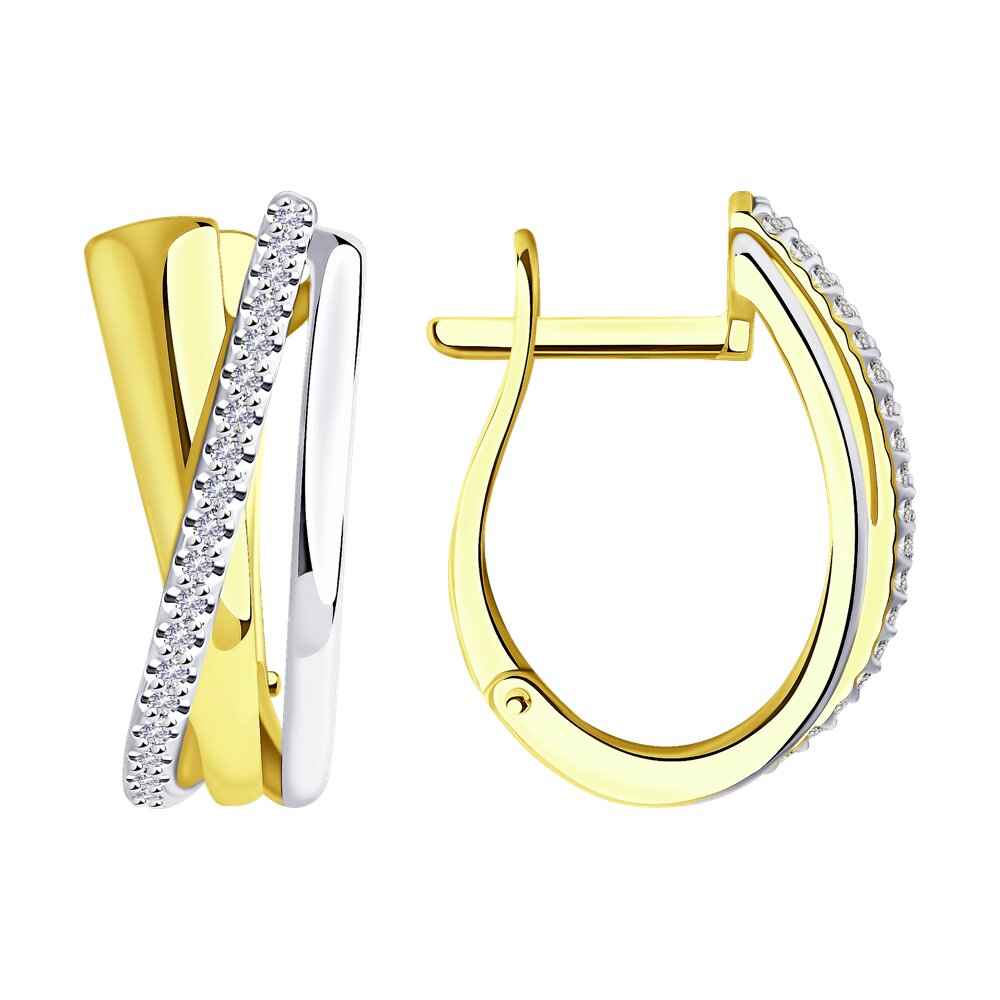 Дамски обеци от 14K жълто и бяло злато с диаманти. Обеците са с удобно английско закопчаване.