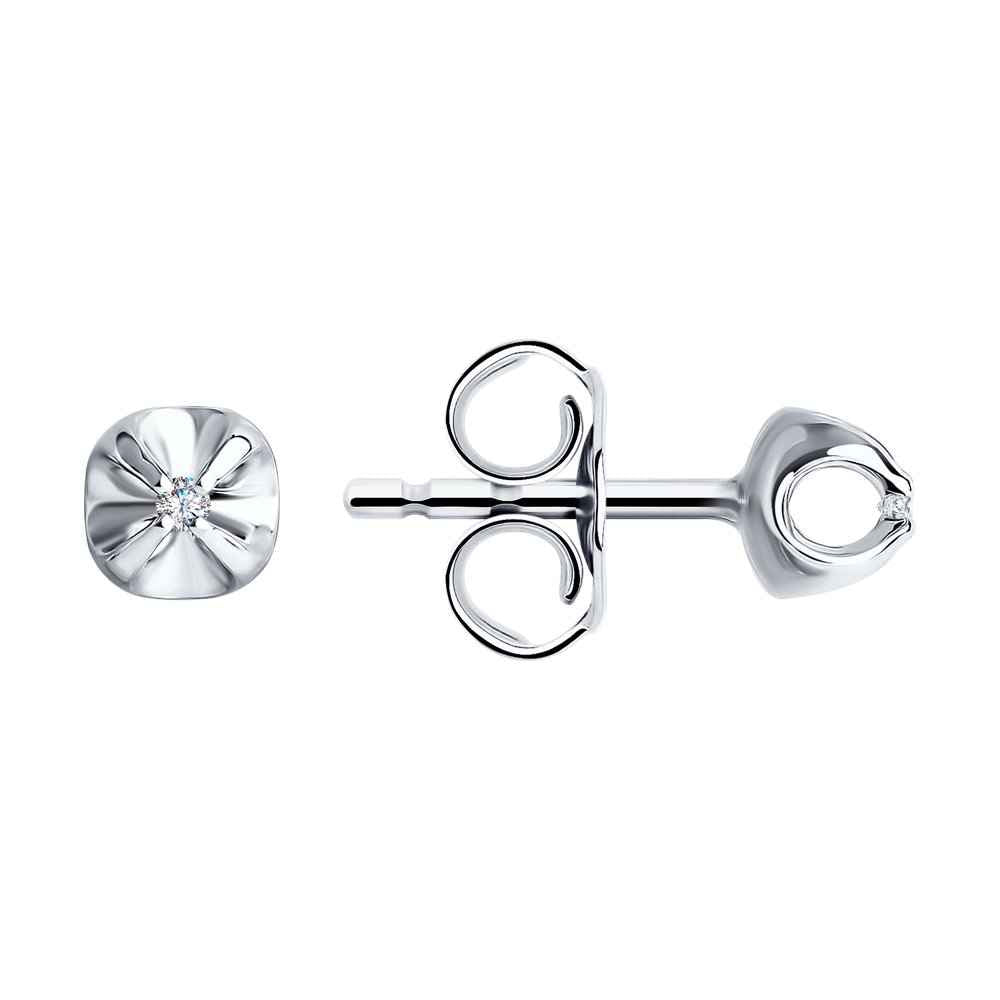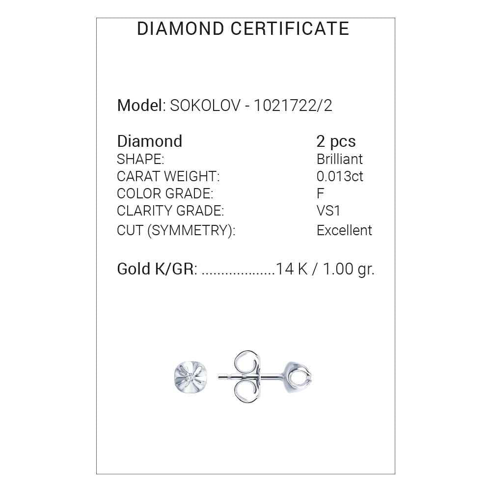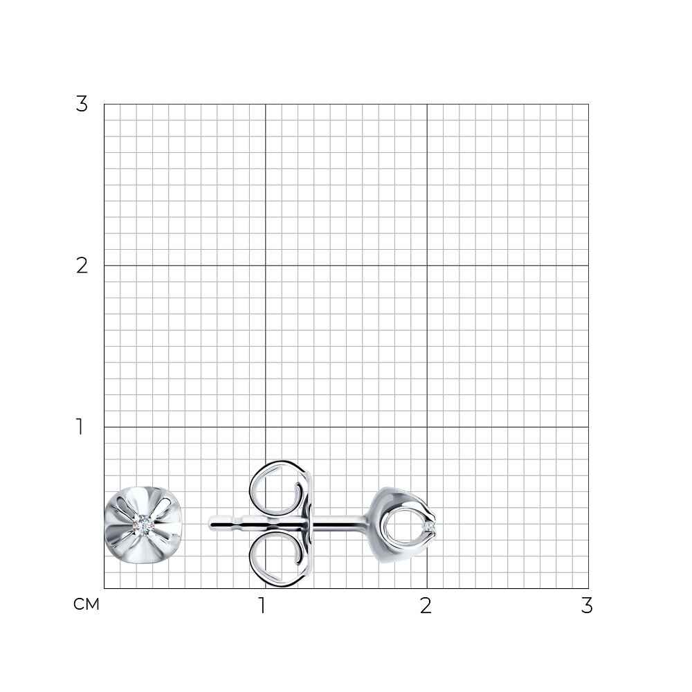 Миниатюрни обеци от 14K бяло злато с диаманти. Закопчаването е на щифт.