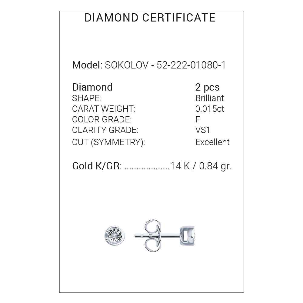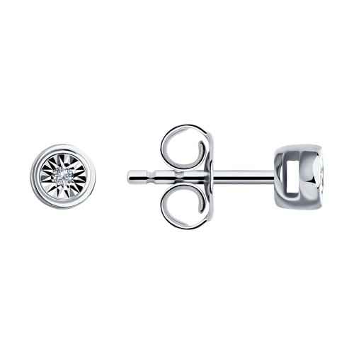 Миниатюрни обеци от 14K бяло злато с диаманти. Закопчаването е на щифт.