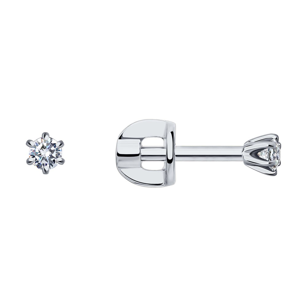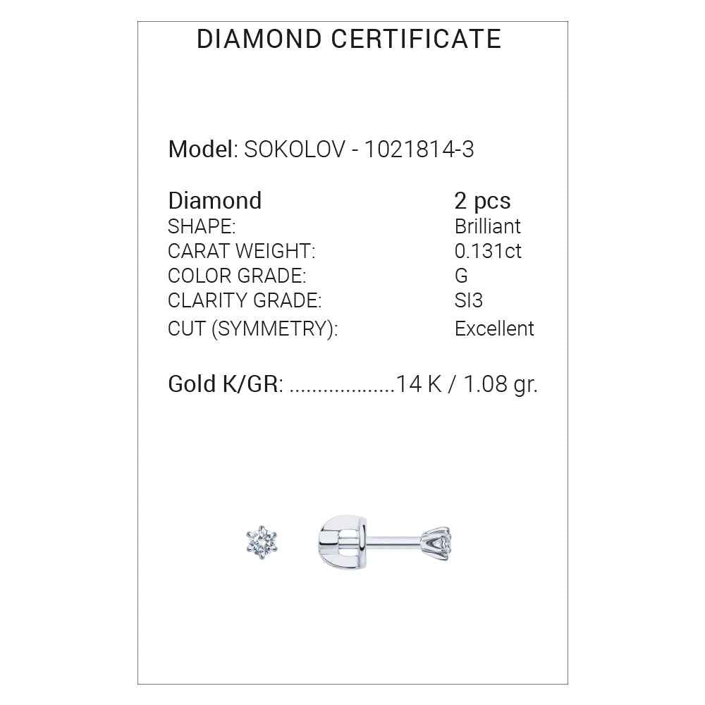 Обеци от 14K бяло злато с брилянти. Закопчаването е на щифт с винт.