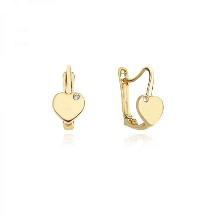 Детски златни обеци със сърце и циркон – сладък акцент с красив дизайн, подходящ за малки принцеси.
