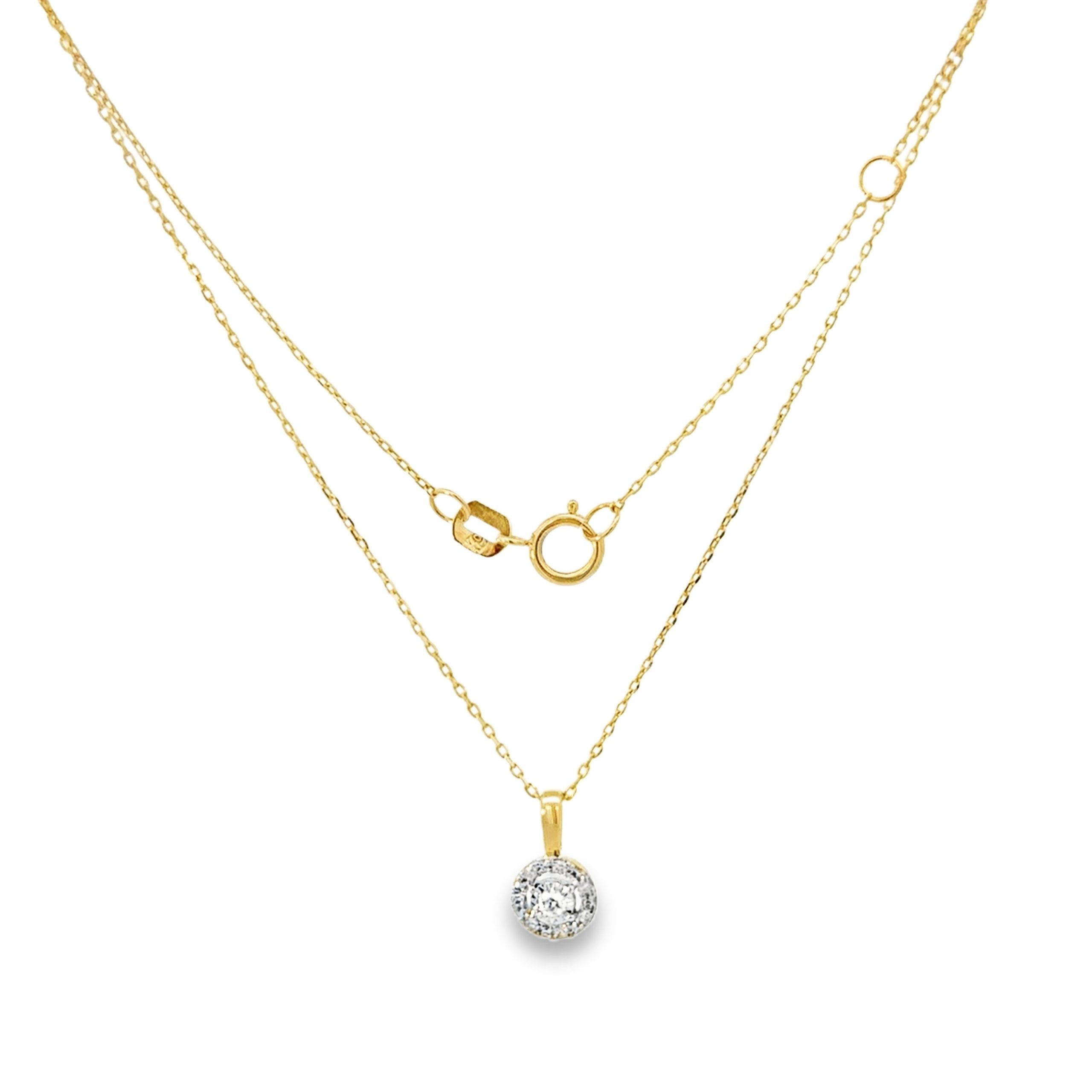 Фино колие от 14к злато с кръгъл медальон, обсипан с естествено добити диаманти. Централният диамант е в “mirror plate” инкрустация за максимален блясък. Любима класика, която никога не излиза от мода.