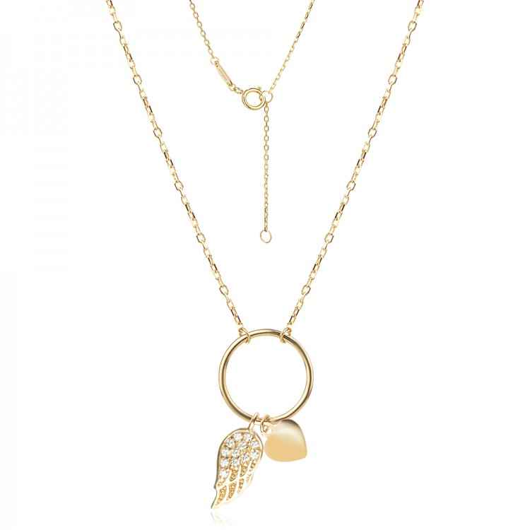 Нежно 14К златно колие с малко англеско крило и сърчице. Колието е с перфектна полировка и фина италианска изработка.